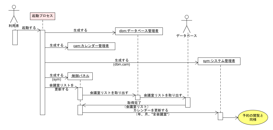 - データベース管理者はデータベースに問い合わせて会議室リストを得て、制御パネルに渡す。