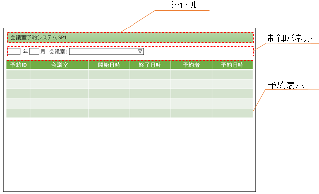 ここでは、画面全体を3つの領域に分け、上にタイトルを、2段目に制御パネルを、残りの部分が予約表示部である。
